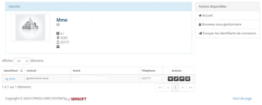 • Modification des informations du sous gestionnaire