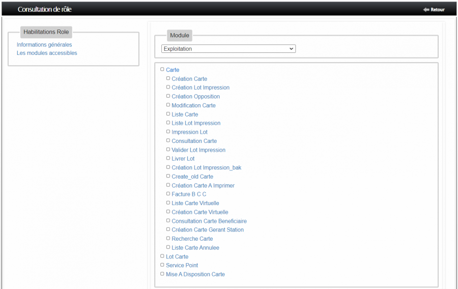 • Au niveau de la liste des rôles cliquer sur le bouton Consulter du rôle correspondant