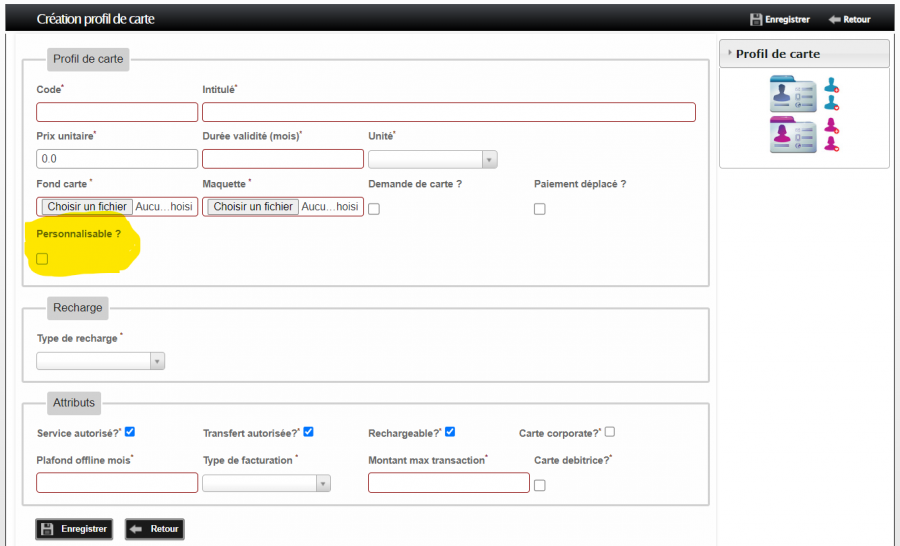 Il n'est pas possible d'activer ou désactiver la personnalisation d'un profil qui a déjà des cartes produites. Il faudra créer un nouveau profil de carte.