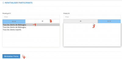 Cette fonctionnalité permet de remettre à zéro le nombre de points fidélité d'une catégorie de participant au choix. Pour ce faire :