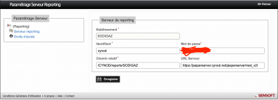 - IDENTIFIANT : Saisir l’identifiant de connexion vers jasperserver ⇒ cynod
